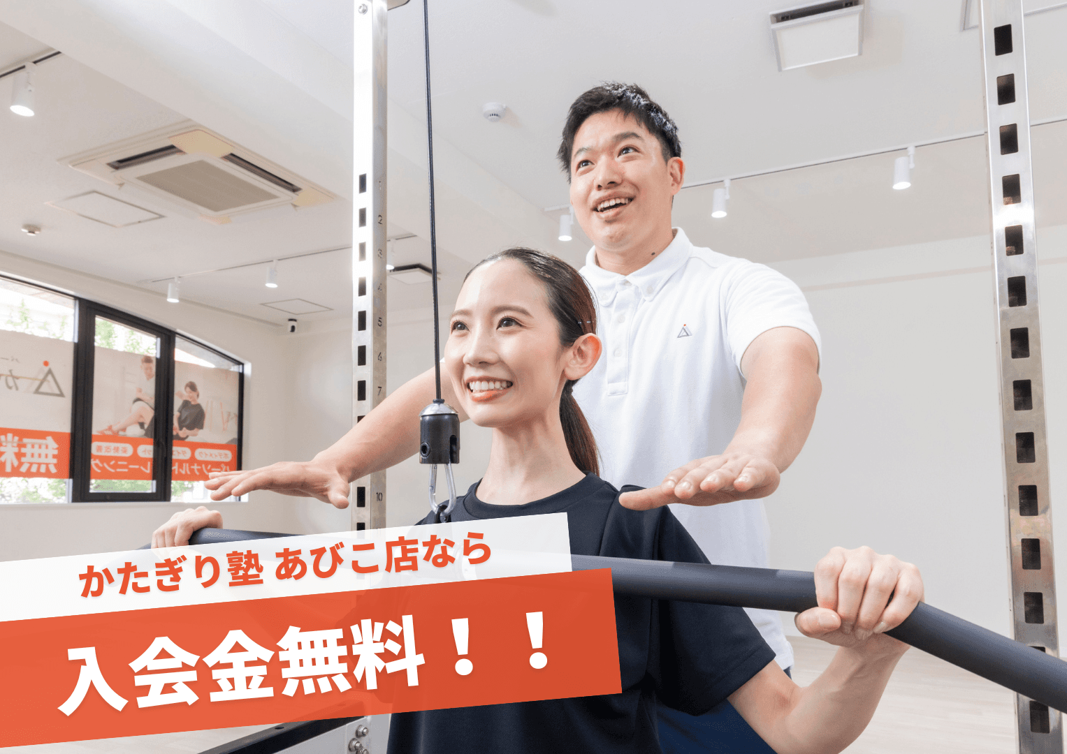 - かたぎり塾 あびこ店では、多店舗展開により仕入れ価格や内装費を抑えておりますため、続けやすい価格でご提供しています。ただし「トレーナー品質」「マンツーマン指導」「衛生管理」など、指導内容やサービスの質には妥協していません。はじめての方でも安心して通っていただけるよう、丁寧なカウンセリングと、お客さまの状態に合わせたトレーニング指導をご用意しています。