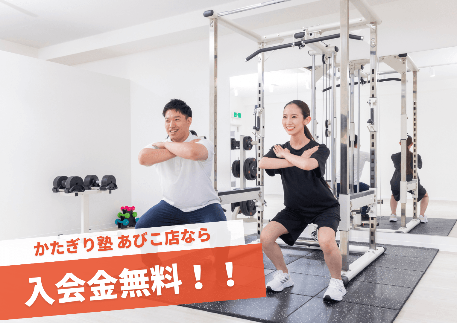 かたぎり塾 あびこ店では、体験パーソナルトレーニング(60分)を無料で受けることができます。そこでは、実際に通われている方と同じく、パーソナルトレーナーがあなたの体質や目標を測定・ヒアリングし、あなただけのメニューでエクササイズをしていただけます。