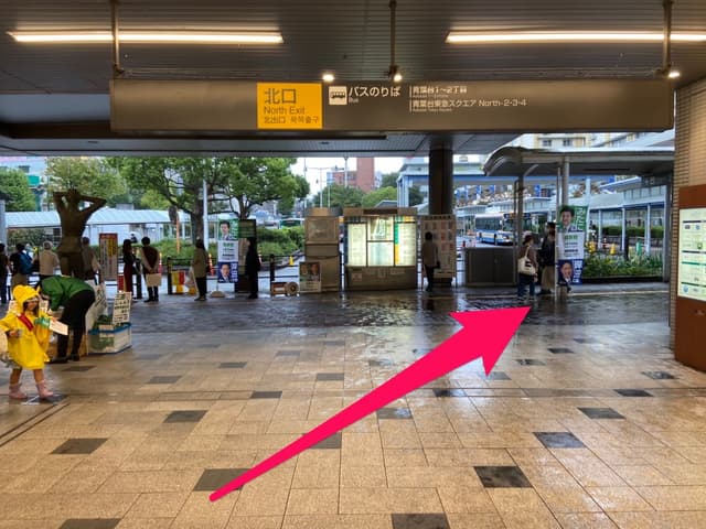 1青葉台駅、北口を出てロータリーを右手から迂回します。