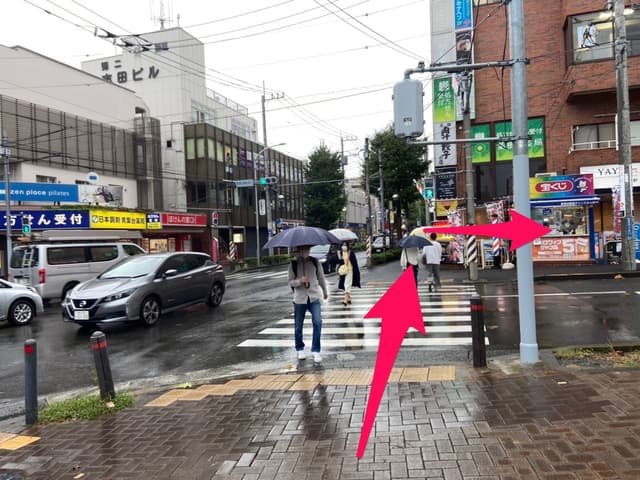 3交差点を渡り、右手に曲がります。