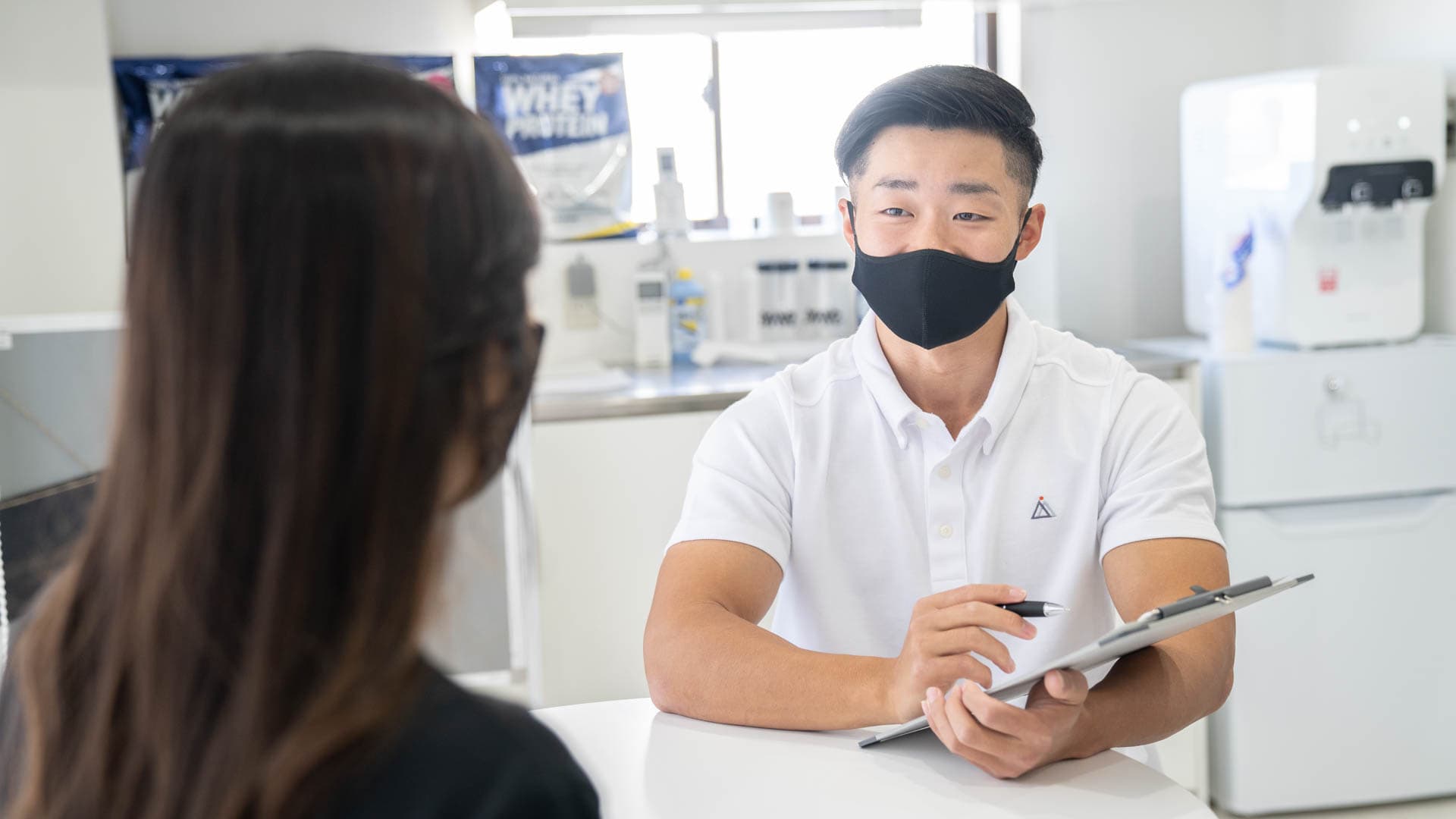 トレーニングの感想を簡単にヒアリングし、日々の生活に必要なアドバイスなどをお伝えします。