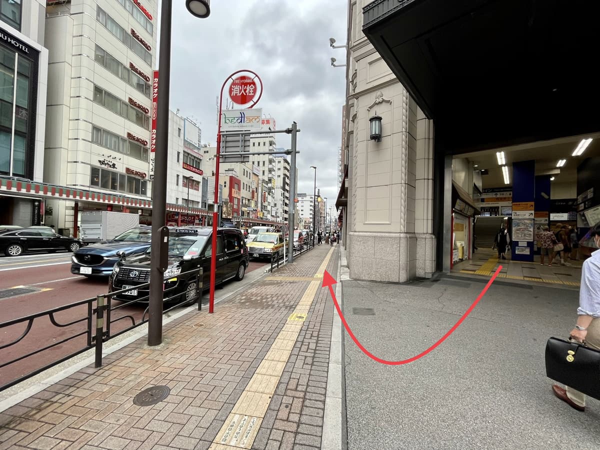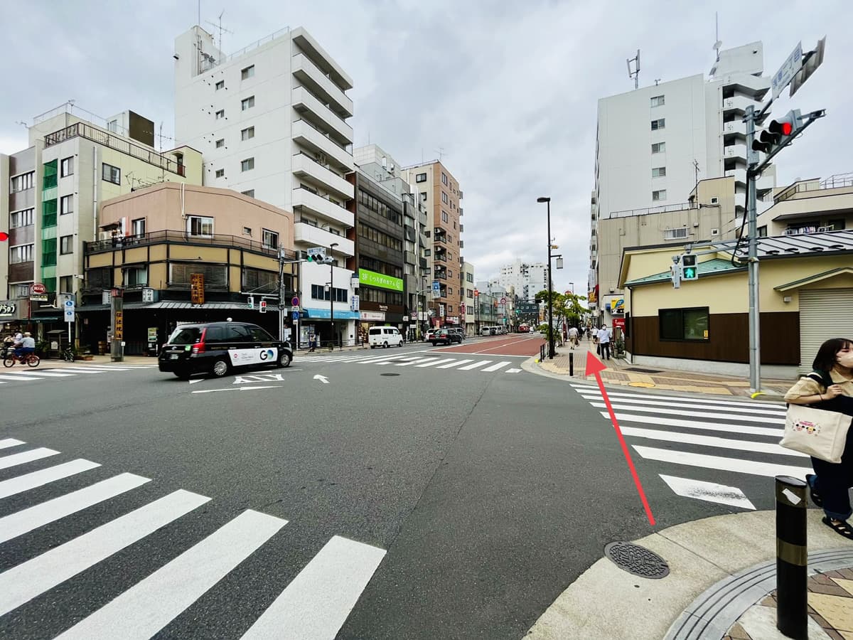 2東武スカイツリーライン 浅草駅正面口を出て矢印の方向へ進みます。