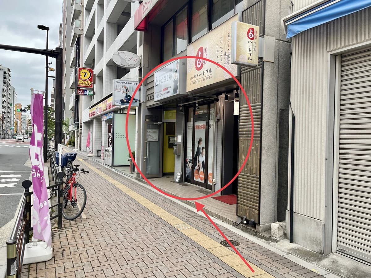 5「デイリーヤマザキ」様の手前に当店「かたぎり塾浅草店」があります。