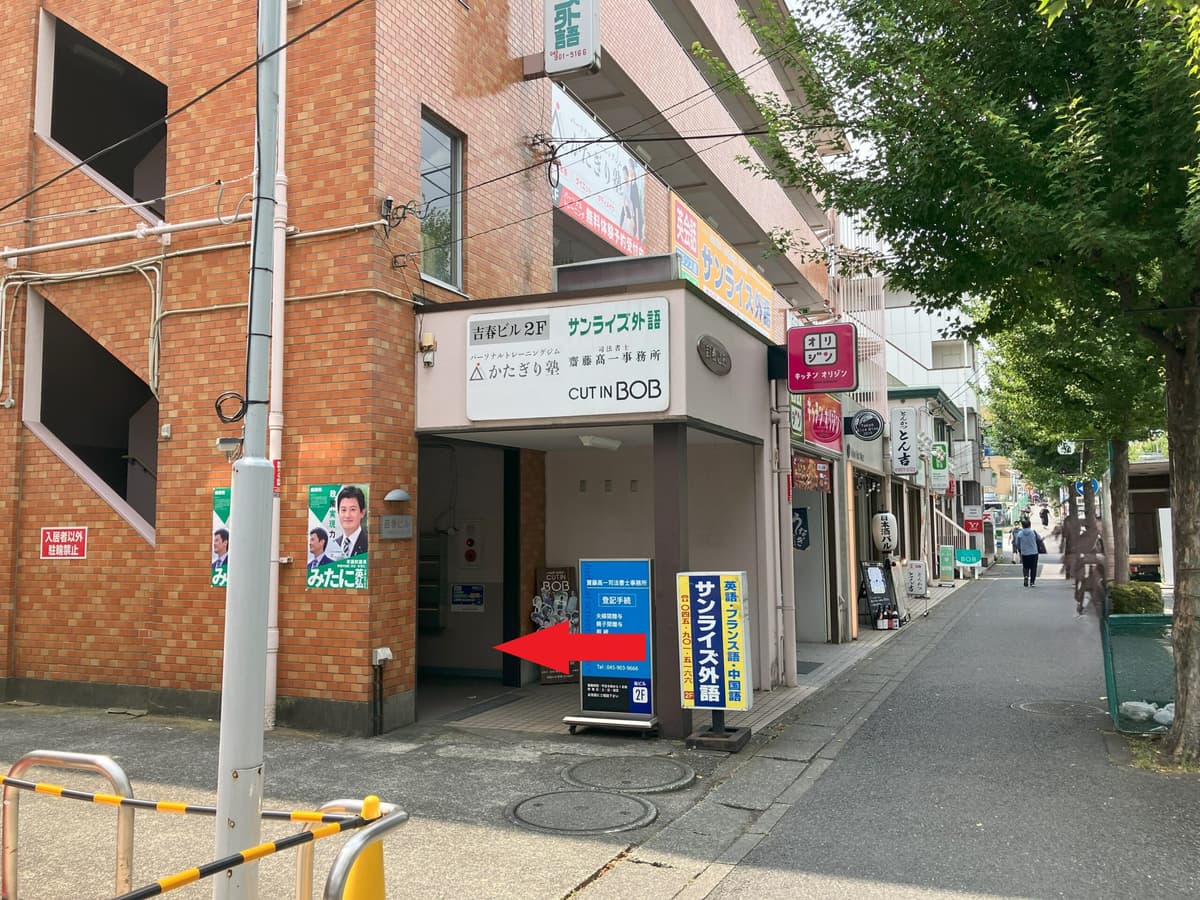 570mほど進みますと左手に、かたぎり塾の看板が見えますので、階段にて2階へお上がりください。