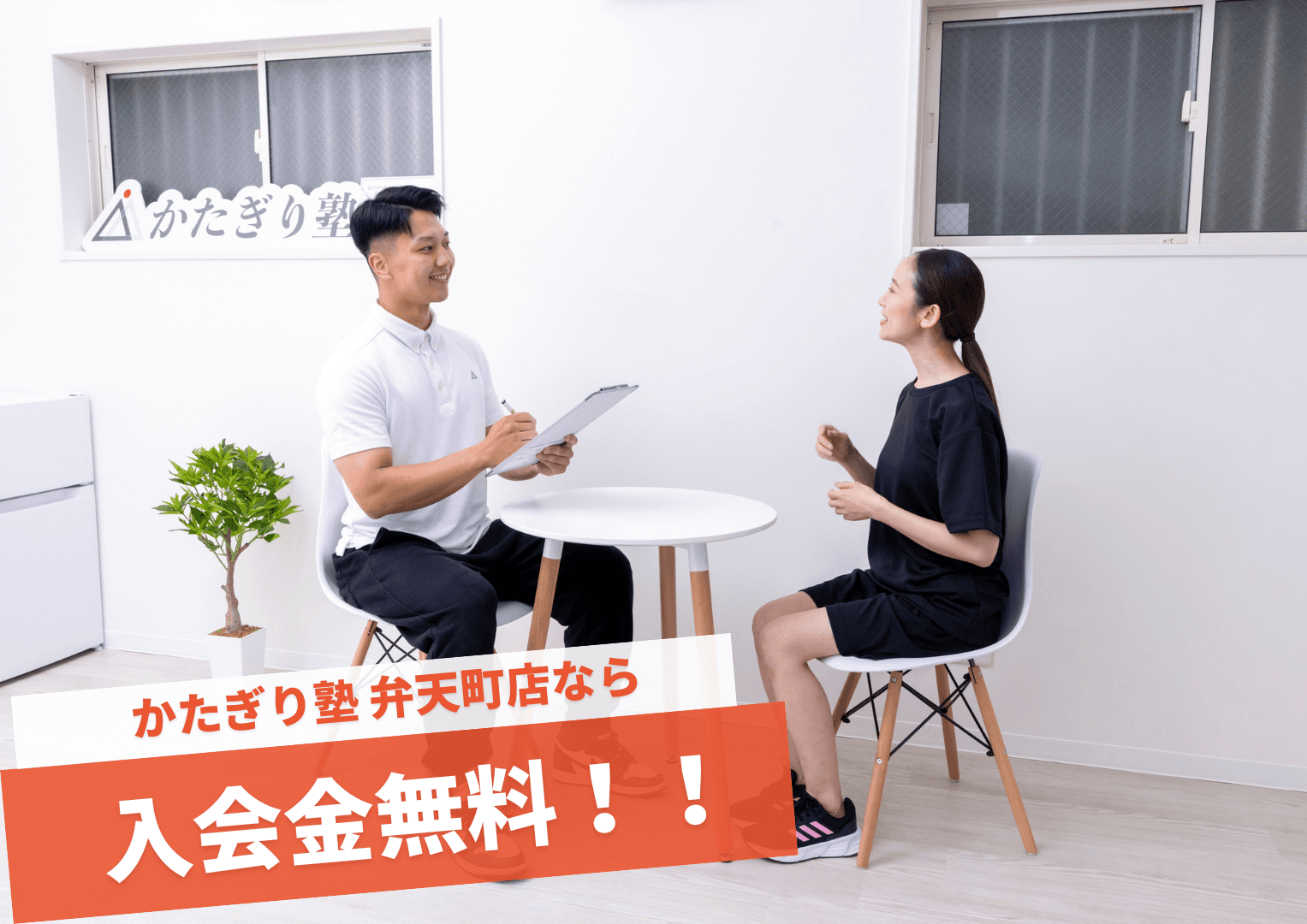 - かたぎり塾 弁天町店では、多店舗展開により仕入れ価格や内装費を抑えておりますため、続けやすい価格でご提供しています。ただし「トレーナー品質」「マンツーマン指導」「衛生管理」など、指導内容やサービスの質には妥協していません。はじめての方でも安心して通っていただけるよう、丁寧なカウンセリングと、お客さまの状態に合わせたトレーニング指導をご用意しています。
