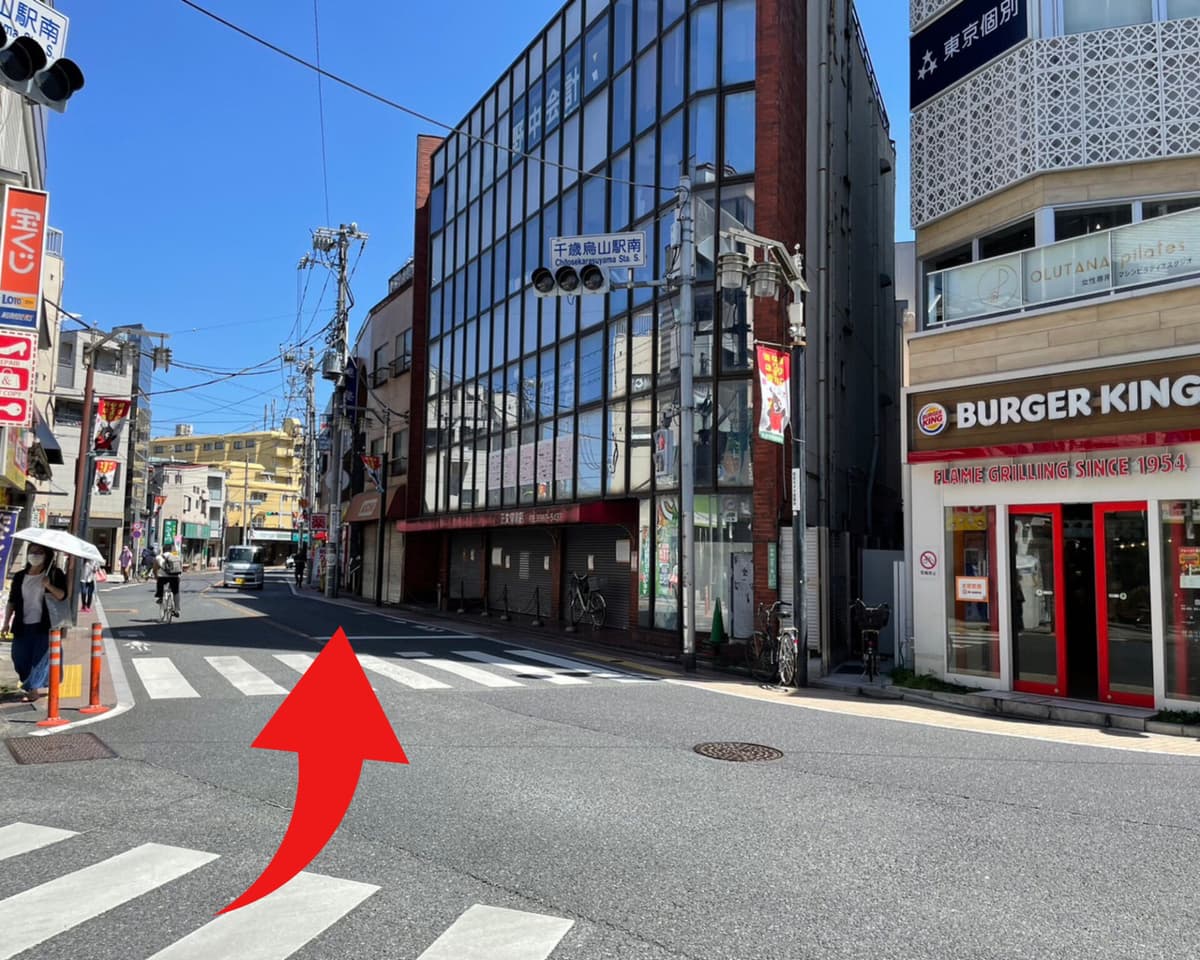 3えるもーる烏山駅前通り商店街を直進し、バーガーキングさんを斜め左に曲がります。