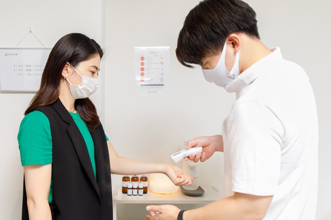 まずは体組成計で体脂肪率・筋肉量をチェックしカウンセリングへ。身体で気になっている部位、どのような理想をもっているかなど、何でもご相談ください。