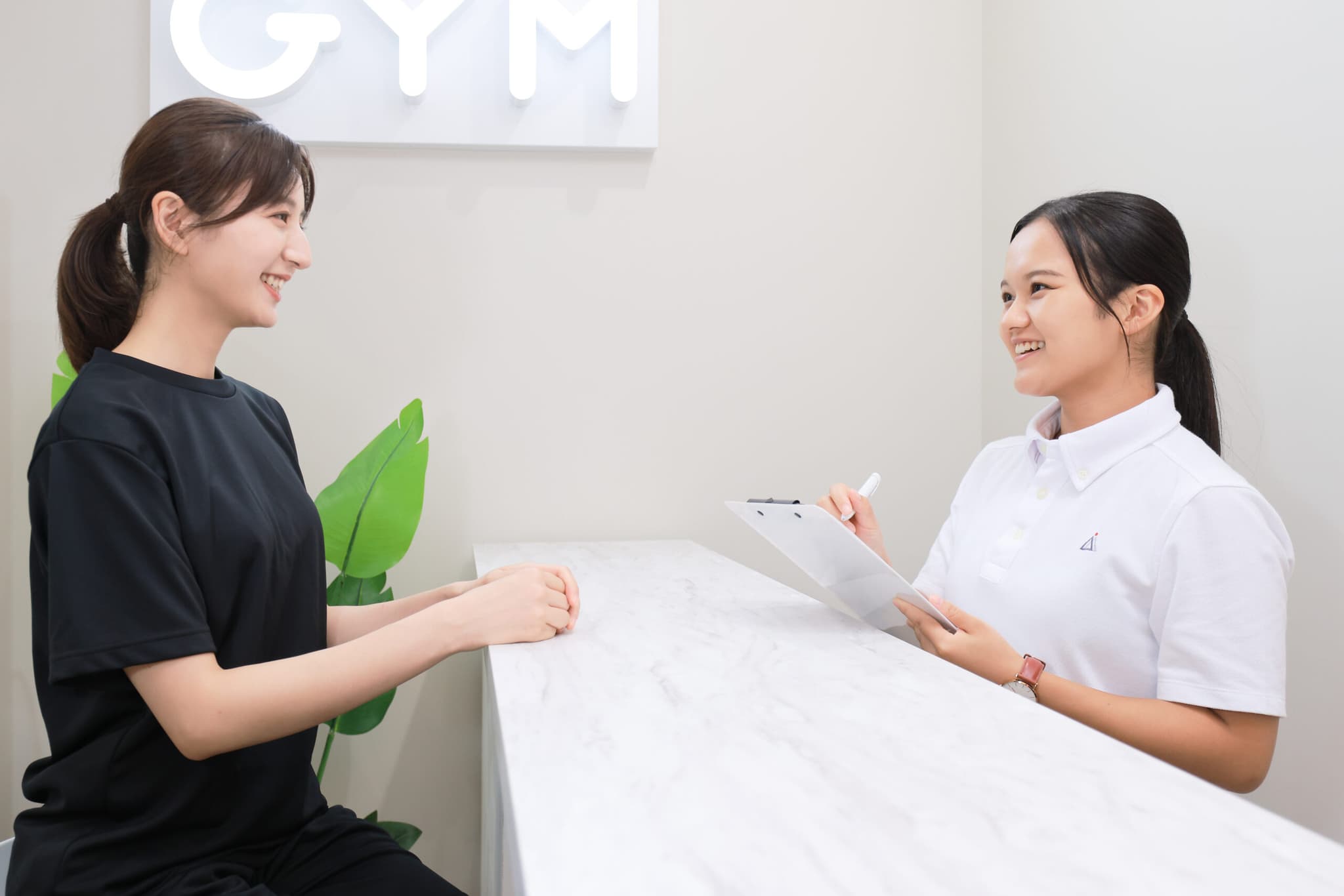 まずは体組成計で体脂肪率・筋肉量をチェックしカウンセリングへ。身体で気になっている部位、どのような理想をもっているかなど、何でもご相談ください。