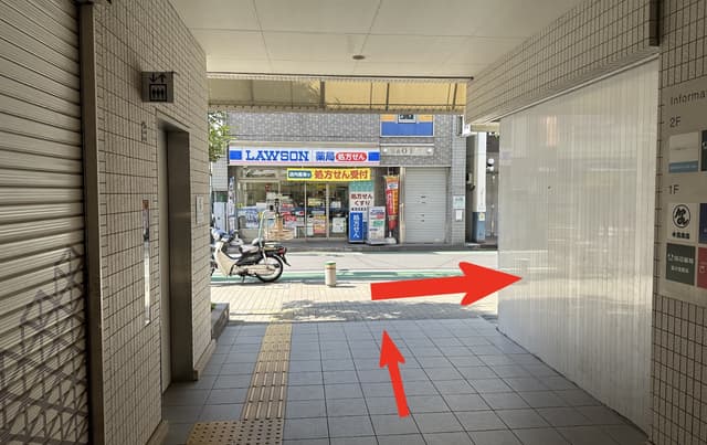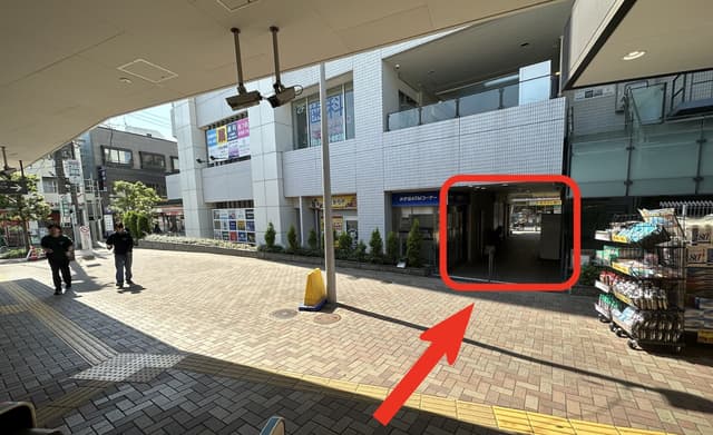 3通路を進むとローソン 荏原町駅前店が見えてくるので、道路に出てすぐ右折します。