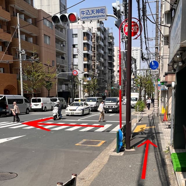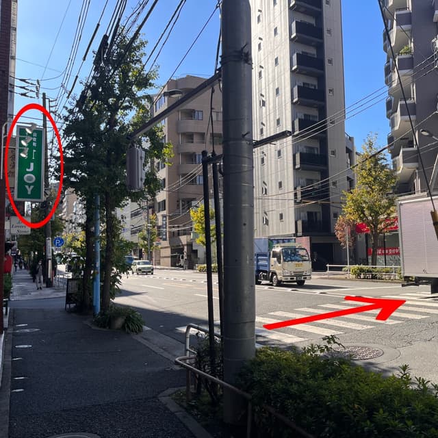 11※神楽坂駅から④ ファミリーマートの前の横断歩道を渡ります