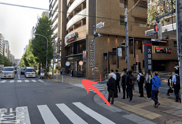 2大塚警察署前の交差点を渡りセブン-イレブン 文京音羽1丁目店を過ぎるまで直進します。