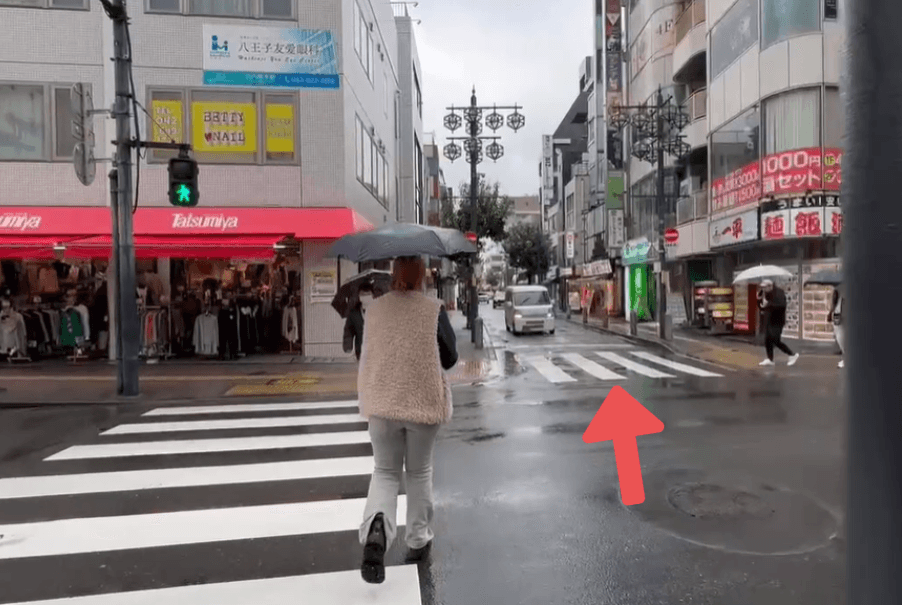 6右折しましたら信号を渡り、『天下一品 八王子店』の通りを直進します。