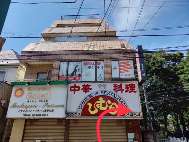 4踏切を渡り、目の前に 中華料理しむらさんの2階がかたぎり塾浜田山店です。 入口は真裏になります。