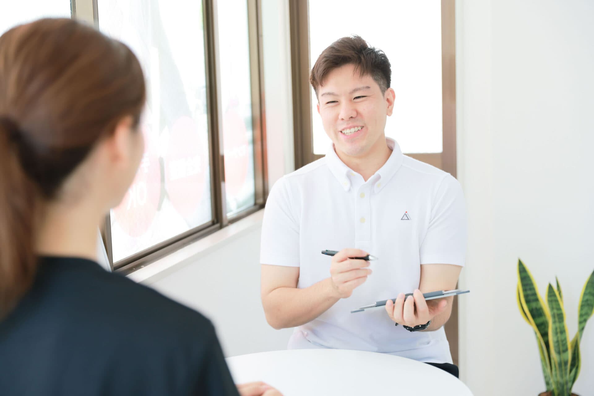 まずは体組成計で体脂肪率・筋肉量をチェックしカウンセリングへ。身体で気になっている部位、どのような理想をもっているかなど、何でもご相談ください。