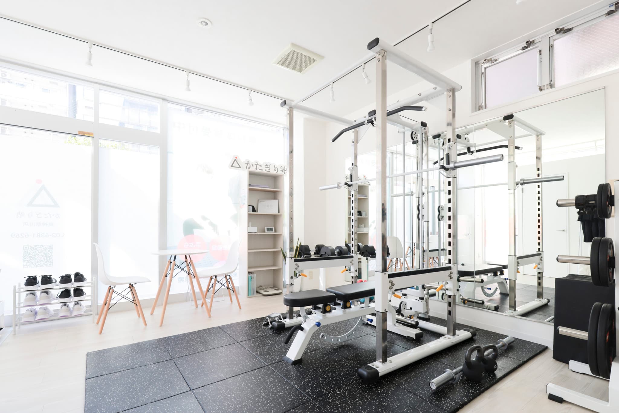 かたぎり塾 東神奈川店は、白を基調とした綺麗で清潔なパーソナルジムで、気持ちよくダイエットやボディメイクが行なえます。
