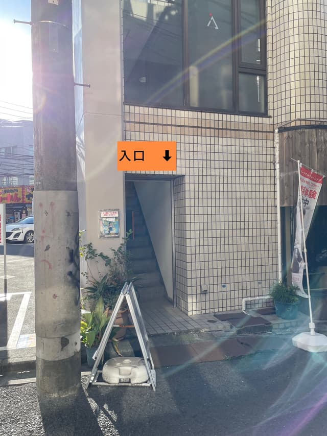 4日吉駅より徒歩1分。タイムズの隣、ゲームセンターの向かい側の専用階段の2Fからパーソナルジムかたぎり塾にお入りください。