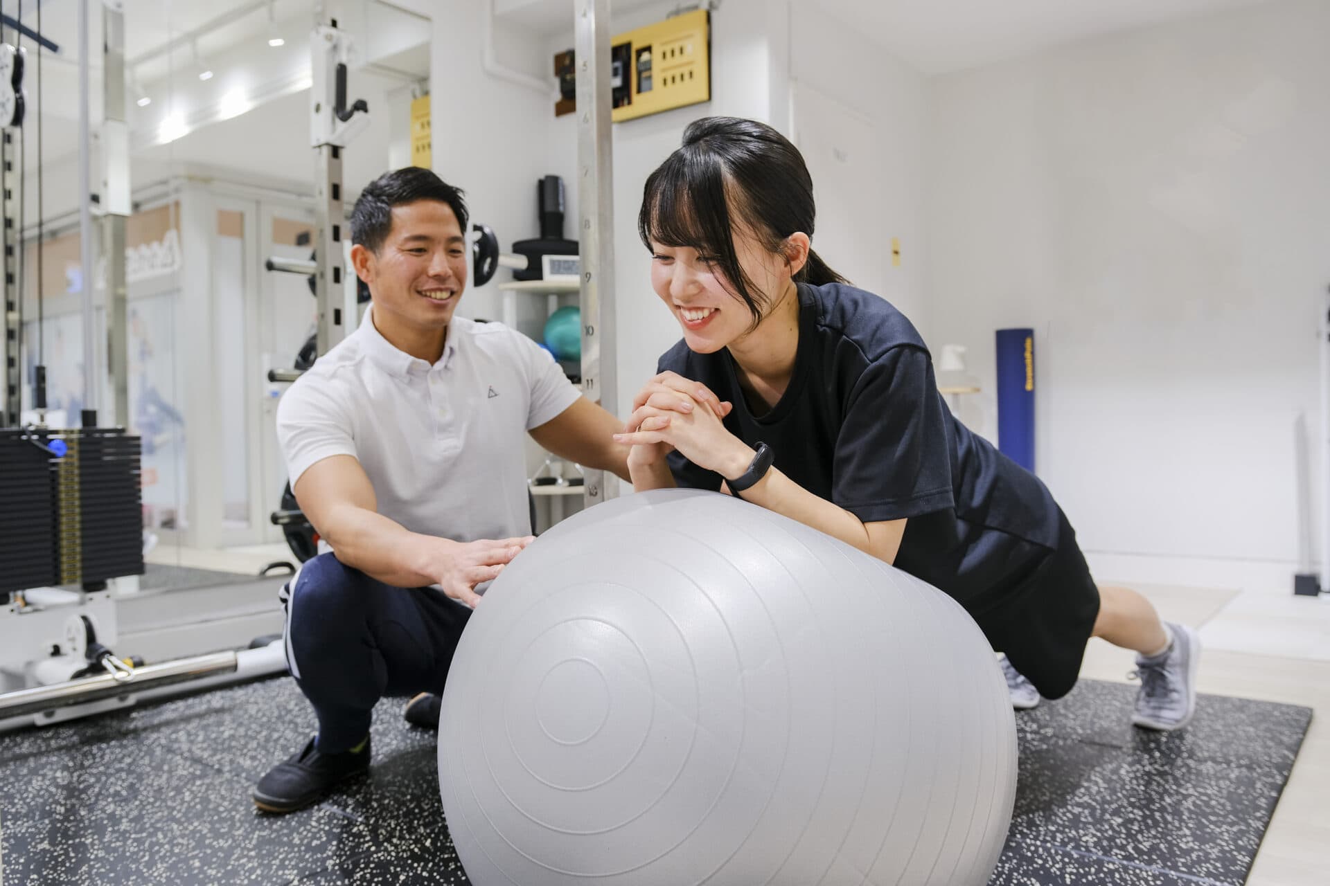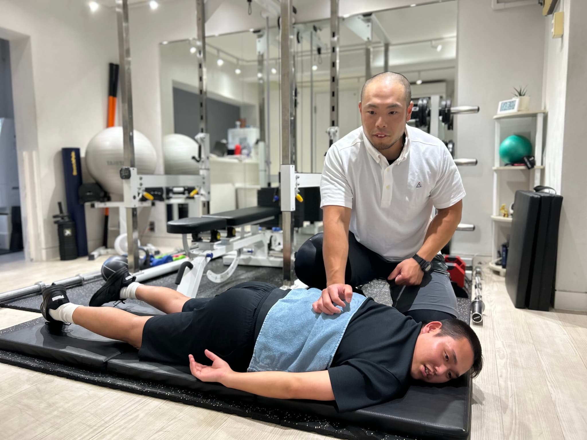 - 大丈夫です!かたぎり塾方南町店には、元々運動経験がない方も大勢通われています。お客様の身体や骨格の悩みに寄り添いながら、丁寧にトレーニング指導をさせていただきます。