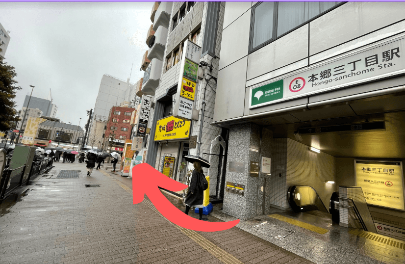 - 1大江戸線本郷三丁目駅3番出口を出て右に進みます