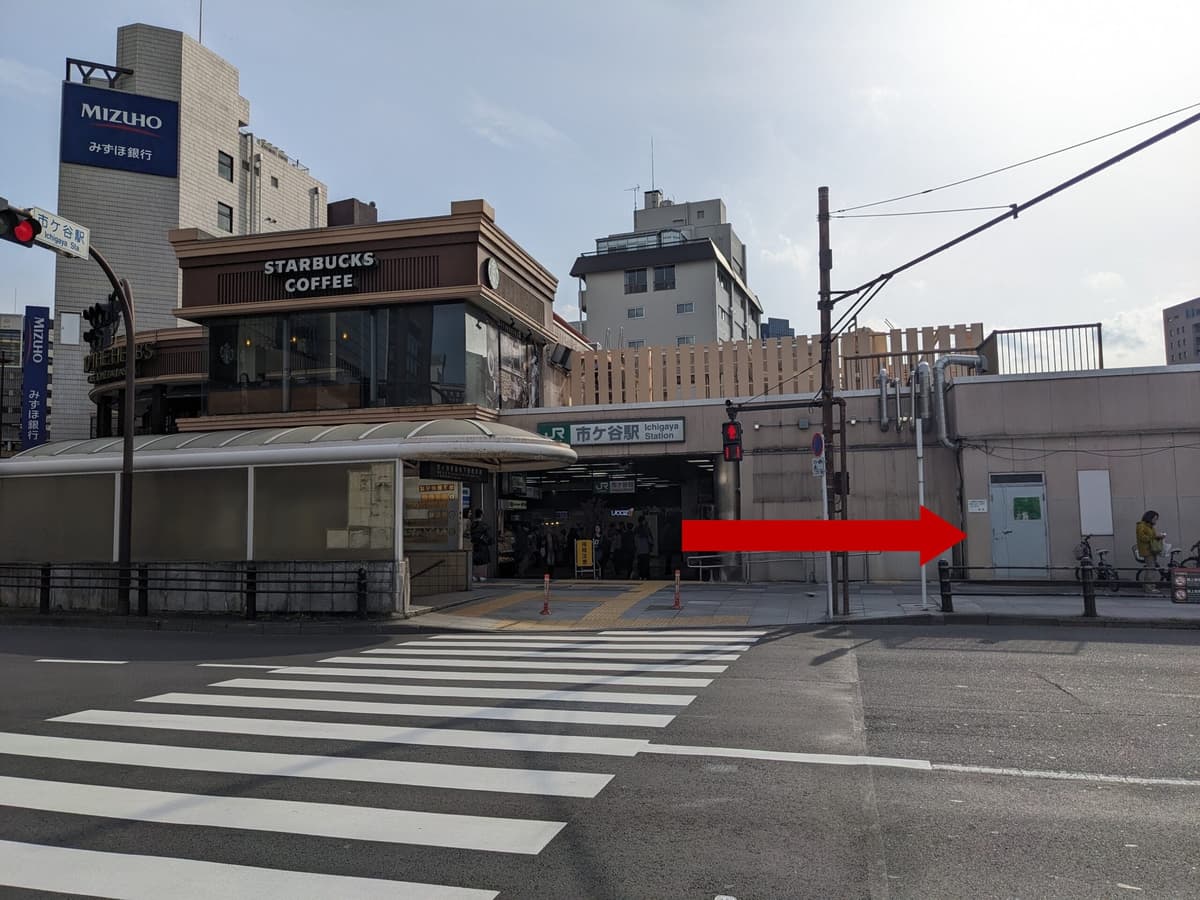 1JR市ヶ谷駅を外堀通り方面に進みます