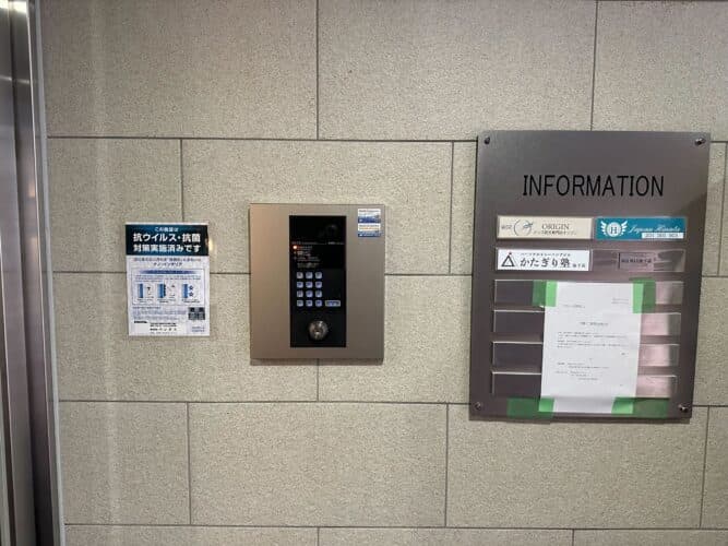 8自動ドアが開きますので、中にお入りいただきエレベーターにて2階までお願いいたします。