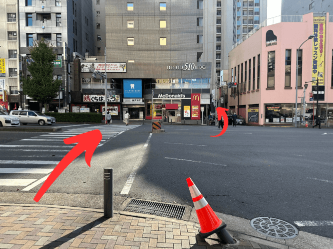 3「池下」交差点の横断歩道を広小路通を横切る形で渡ります。 「マクドナルド 池下店」を左手に見ながら更に直進します。