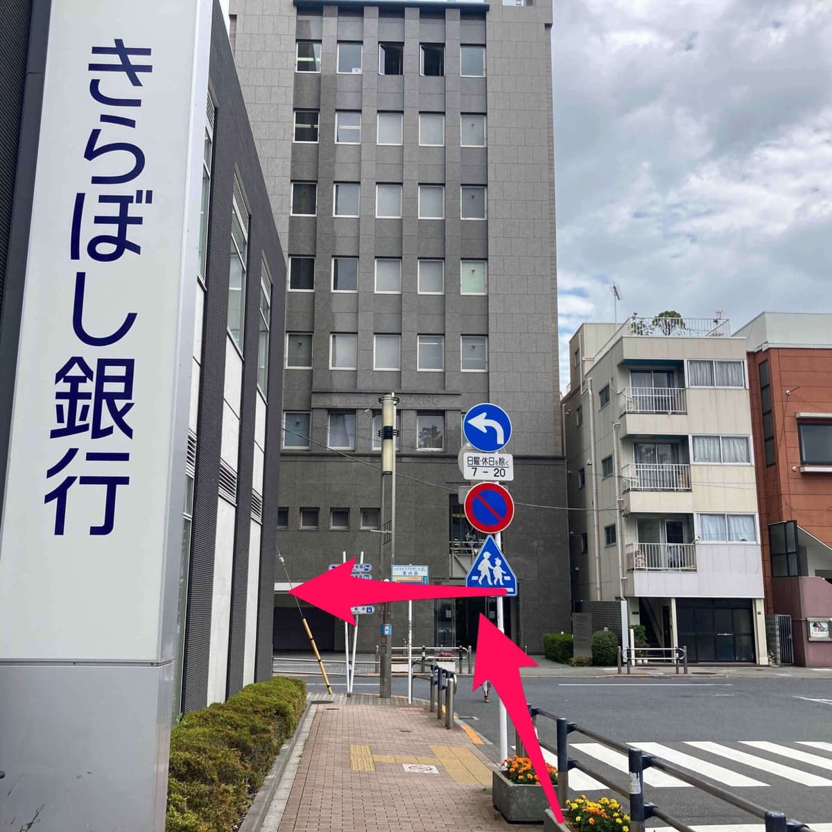 2きらぼし銀行 板橋支店を超え、旧中山道を左へ曲がる。