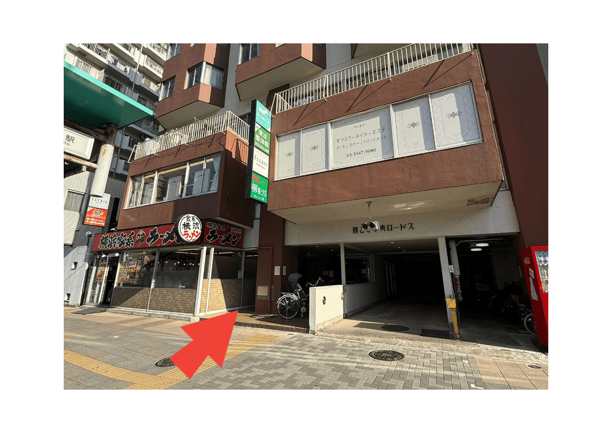 2勝どき駅 A3a出口を出てすぐ左側を向き、正面にある建物の6階がかたぎり塾です。 左側の通路を通りエントランスにエレベーターがございます。