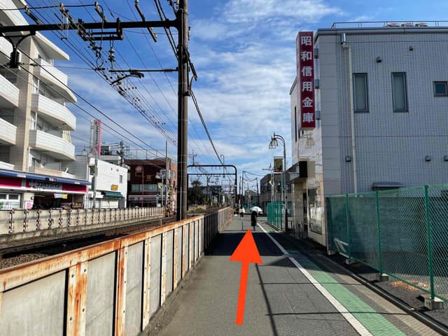 3線路沿いを直進していくと昭和信用金庫さんが見えてきますがそのまま直進します。