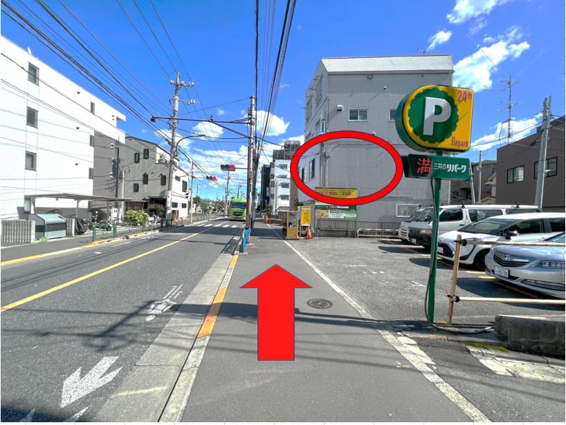 5まっすぐ歩いて左手にみえる、こちらの建物の2階となります