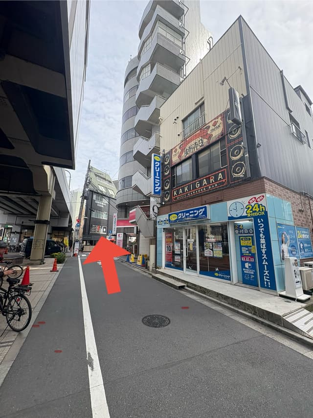 3「ポニークリーニング糀谷駅前店」が右手に見えてきますので矢印の方向に進みます。