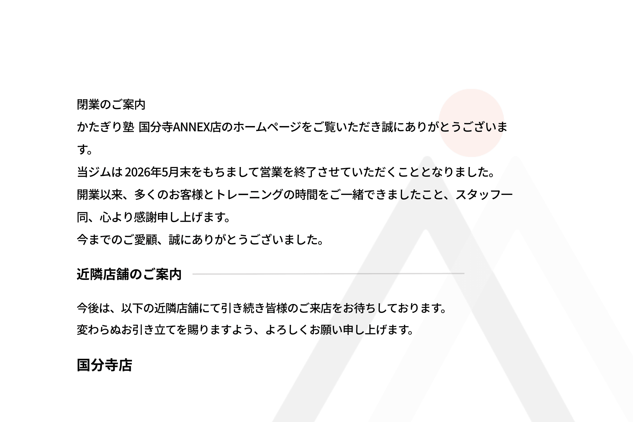 パーソナルジム かたぎり塾国分寺ANNEX店