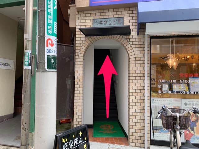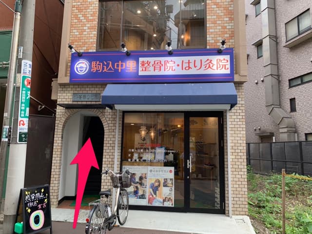 4駒込中里接骨院・はり灸院の横手に階段入り口が御座います。