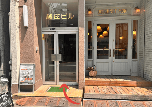 7ドーナッツMORIさんの横の入口、「越庄ビル」のエレベーターで3階にお上がり下さい