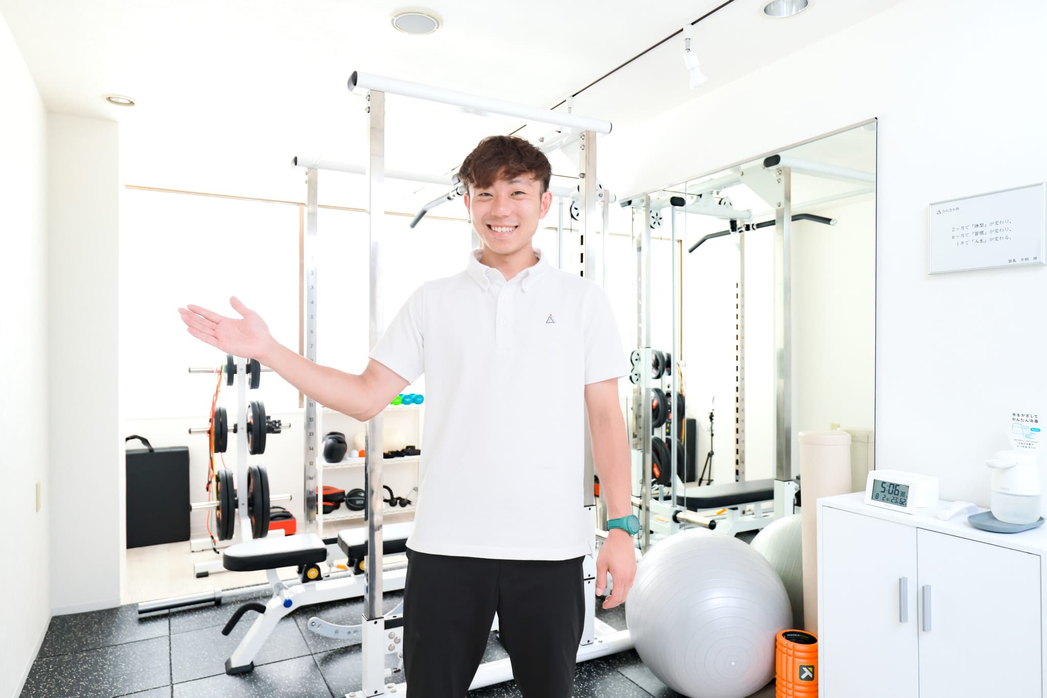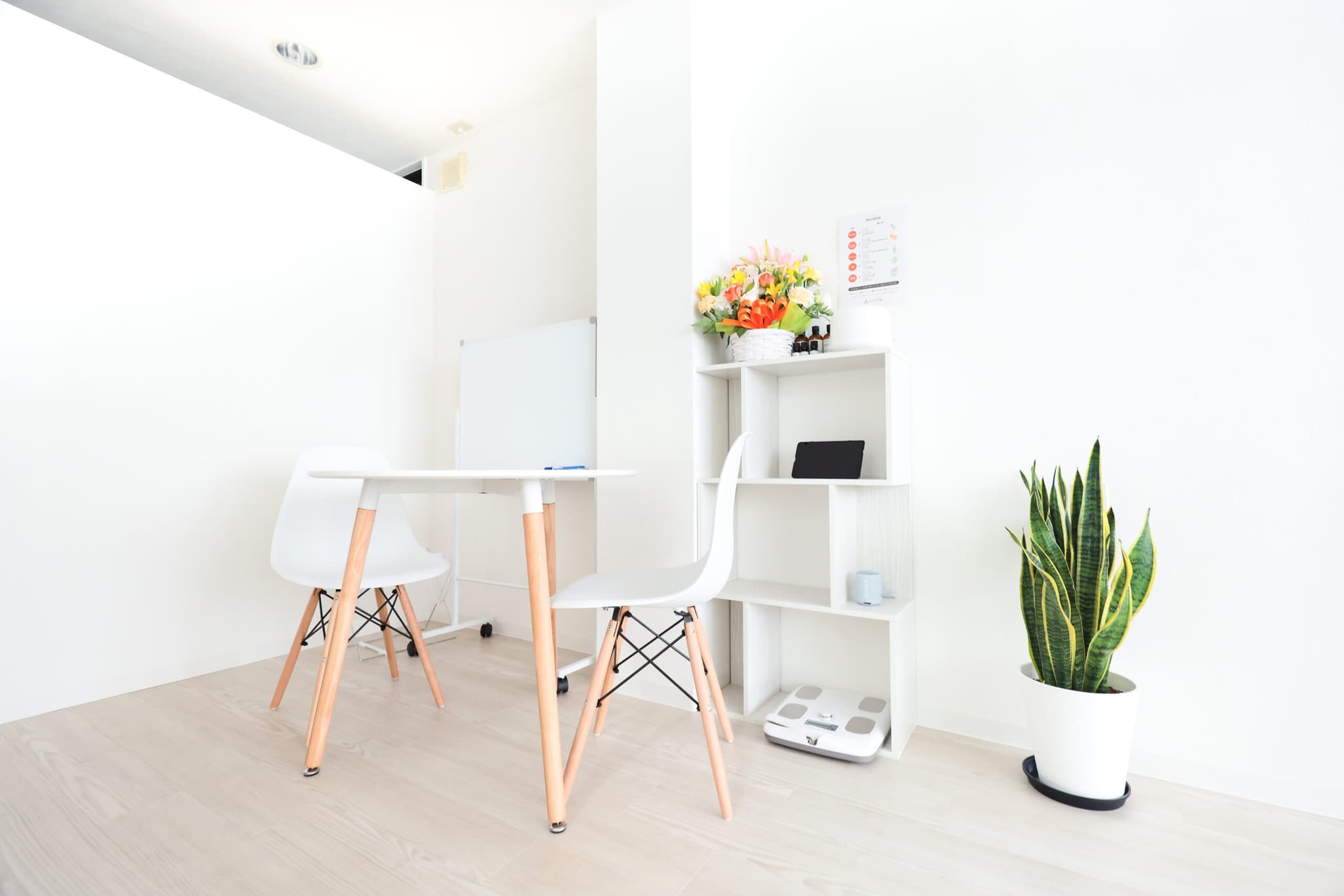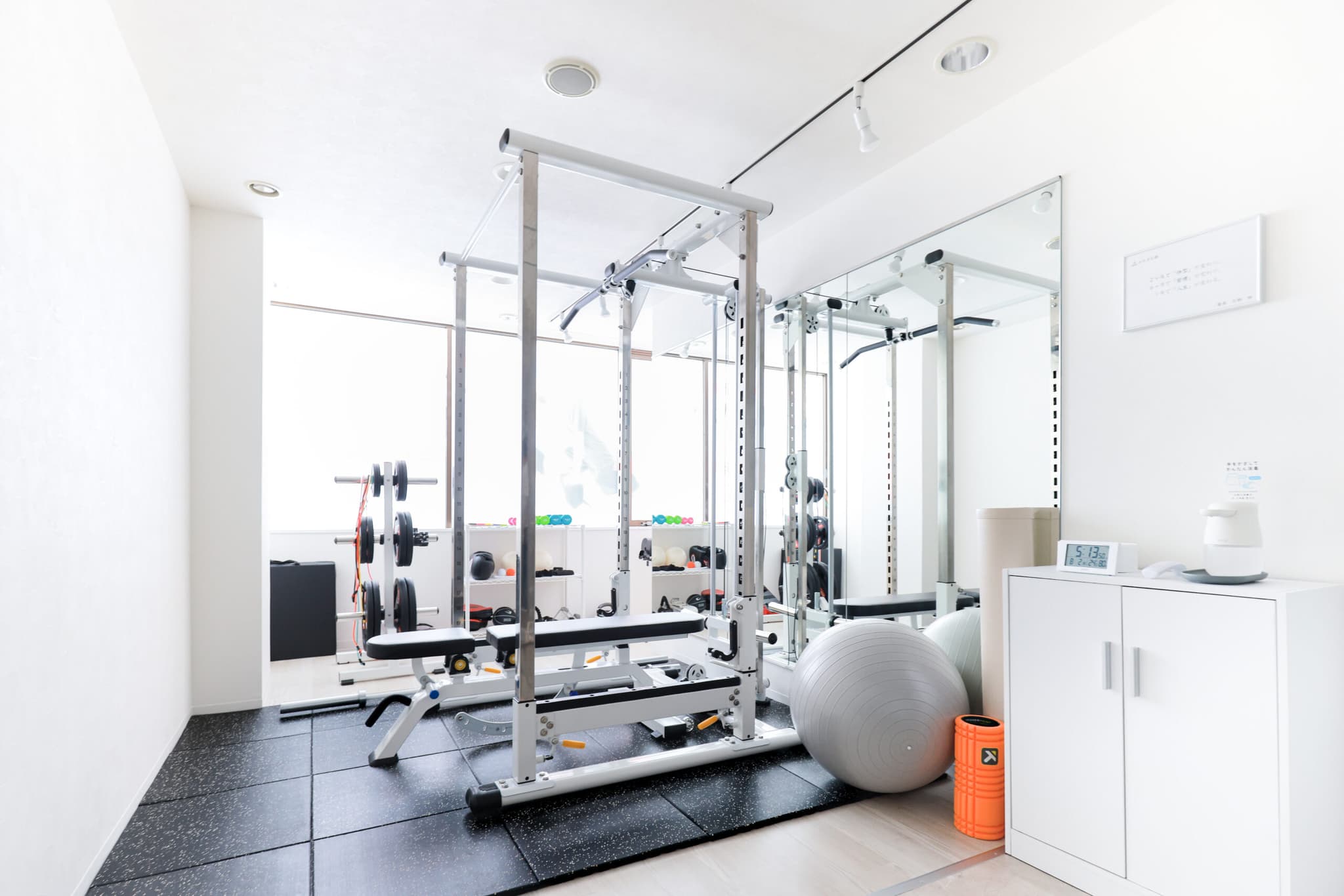白を基調とした温かみのある空間で、体験パーソナルトレーニング(60分)を無料で受けることができます。体質や目標を測定・ヒアリングをし、あなただけのメニューでエクササイズを実施します。