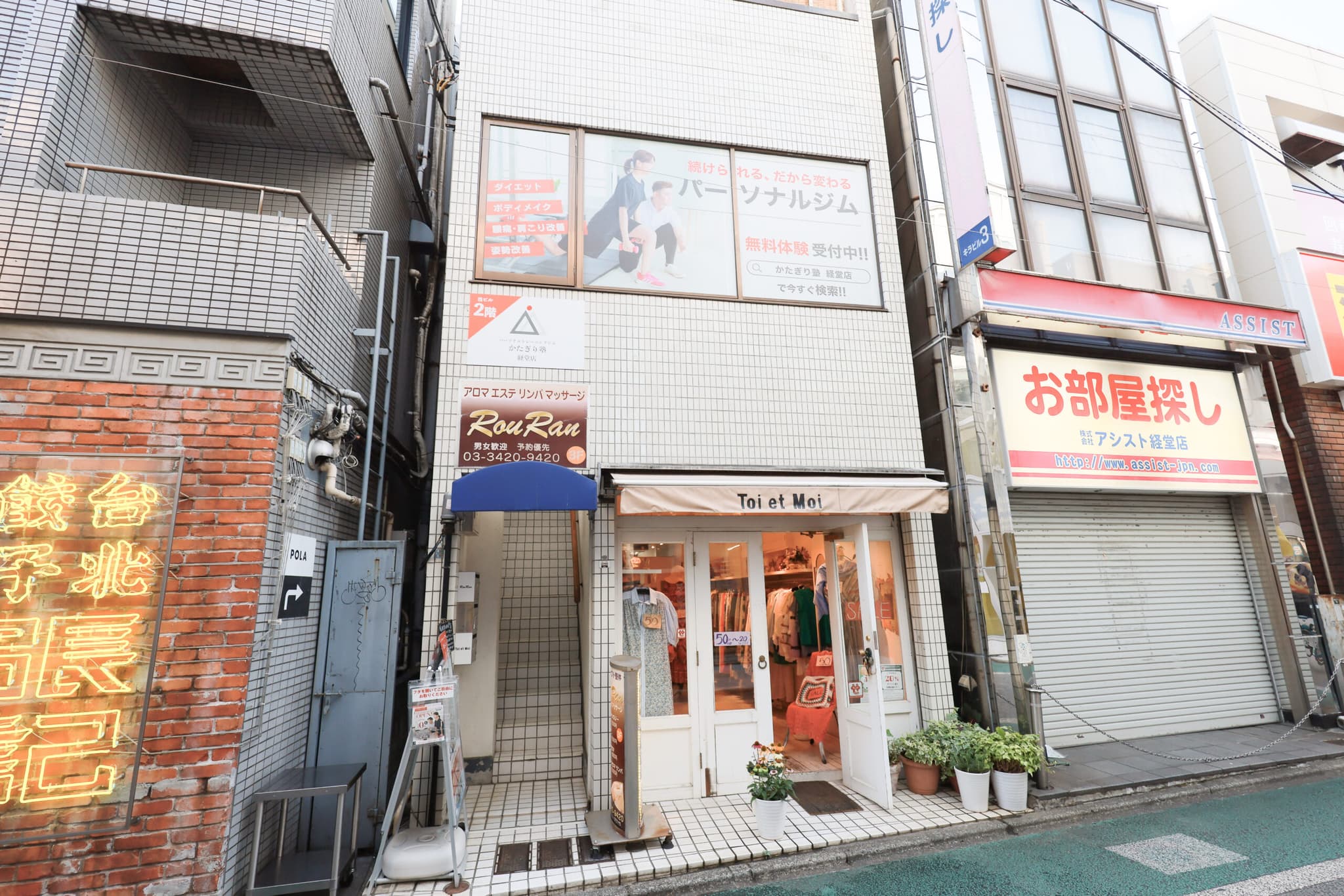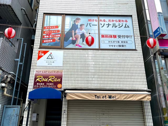 41階に衣料品店「Toi et Moi」様が入っている六ツ木ビルの2階に「パーソナルジム かたぎり塾 経堂店」がございます!