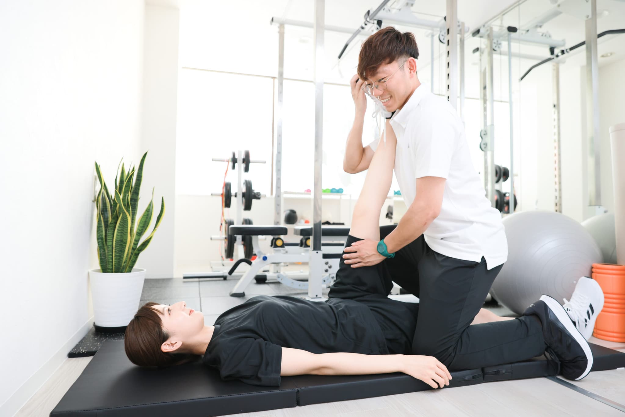 自分の体の癖や、今まで痛めた所もチェックしてくれて、扁平足なので重心の取り方もシェアしてくれました。トレーニング中も意識すべきポイントをわかりやすく教えてくれ、一つ一つフォームの修正もしてくれました。回数より一回一しっかり正しくやれたので、おかげで1つ目のトレーニングでもう汗だくでした。