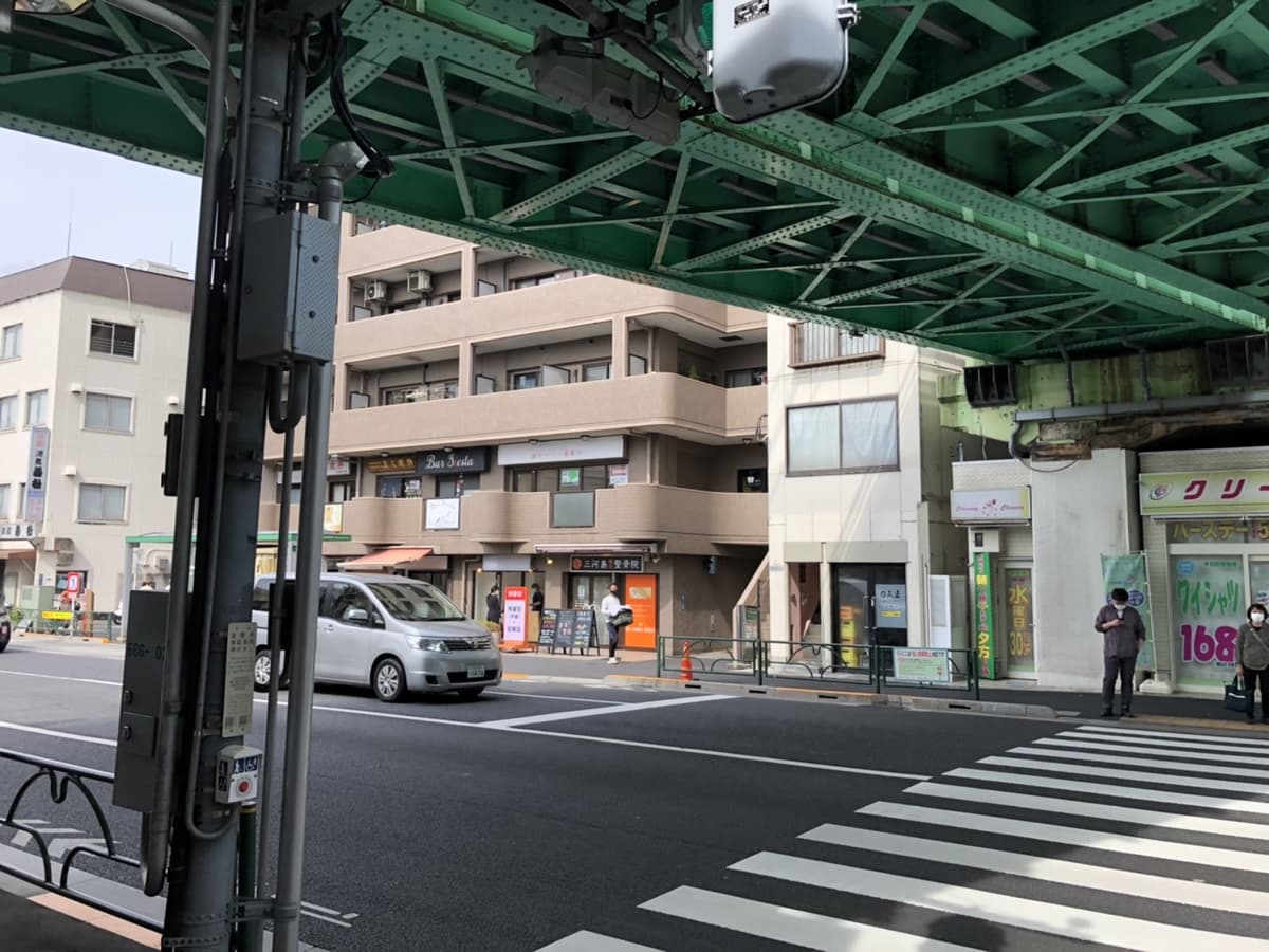2駅を出て正面の信号を渡ります。