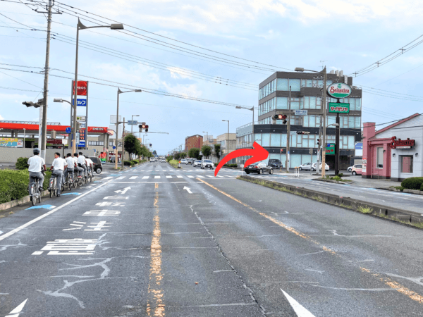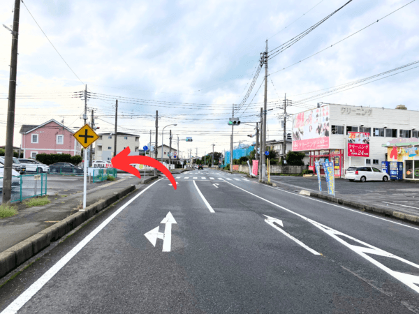 3「元吉田北」交差点を通り過ぎ、「スターバックス コーヒー 水戸駅南中央通り店」を通り過ぎ、「ミニストップ 新水戸駅前通り店」を通り過ぎた先、「荒谷一本松」交差点で右折します。 「サイゼリヤ 水戸元吉田店」が目印です。