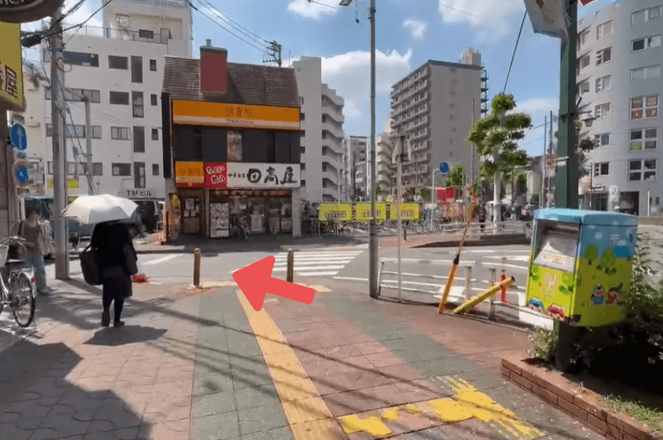 3直進しましたら、『日高屋 みずほ台西口店』を目印に横断歩道を渡り、左折します。