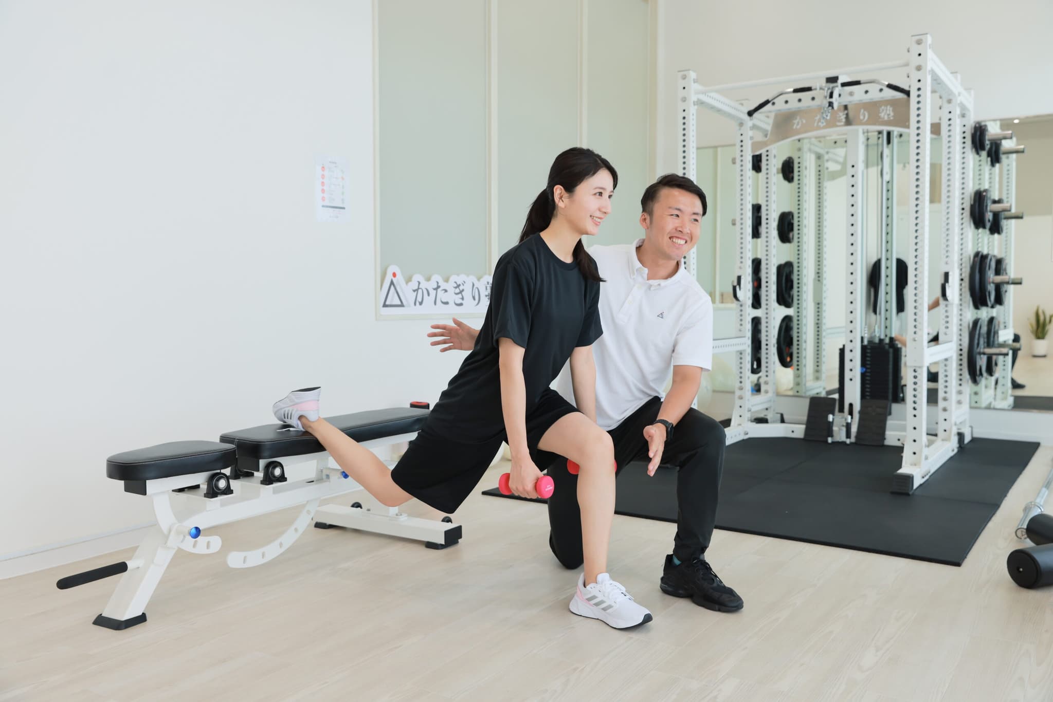 - 大丈夫です!かたぎり塾には、元々運動経験がない方も大勢通われています。お客様の身体や骨格の悩みに寄り添いながら、丁寧にトレーニング指導をさせていただきます。