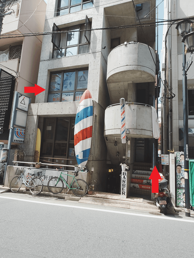 7松栄軒理髪館さんの2階、右側の階段からお入りください