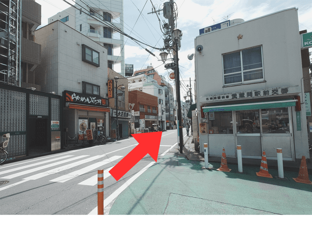 6駅前交番とラーメン店の間を30秒ほど進んで頂きます