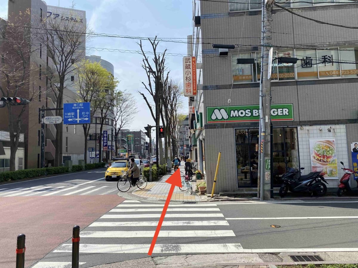 3右手にモスバーガーが見えるまで直進します。