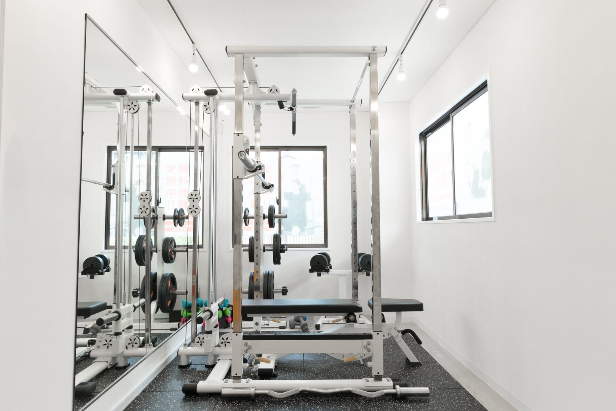 かたぎり塾 武蔵中原店では、白を基調とした綺麗で清潔なパーソナルジムで、気持ちよくダイエットやボディメイクが行なえます。