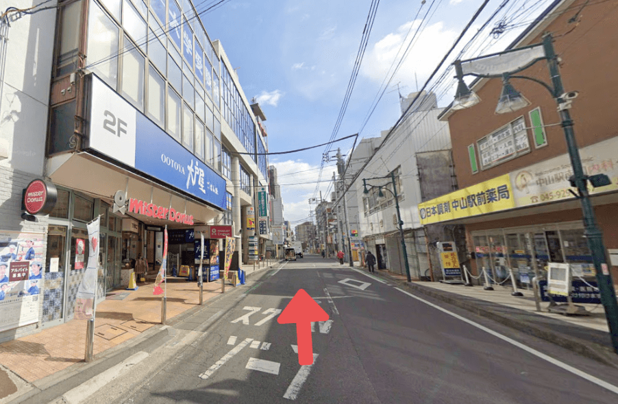1JR横浜線 グリーンライン 中山駅 2番出口を出て『横浜銀行 中山支店』を沿うように左折します。