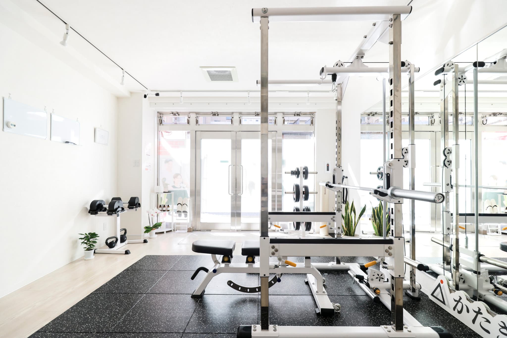 かたぎり塾 成増店は、白を基調とした綺麗で清潔なパーソナルジムで、気持ちよくダイエットやボディメイクが行なえます。
