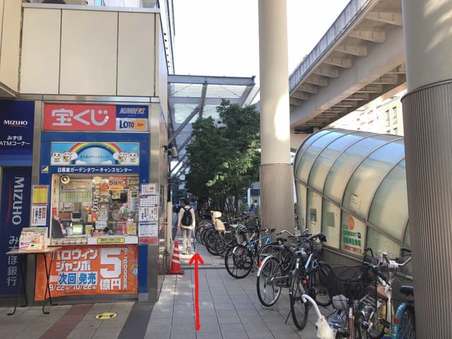 3横断歩道を渡ると宝くじ売り場が見えるので、その脇を直進します。