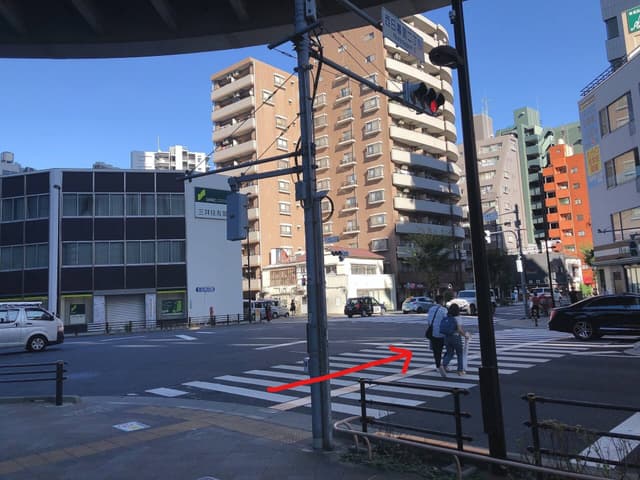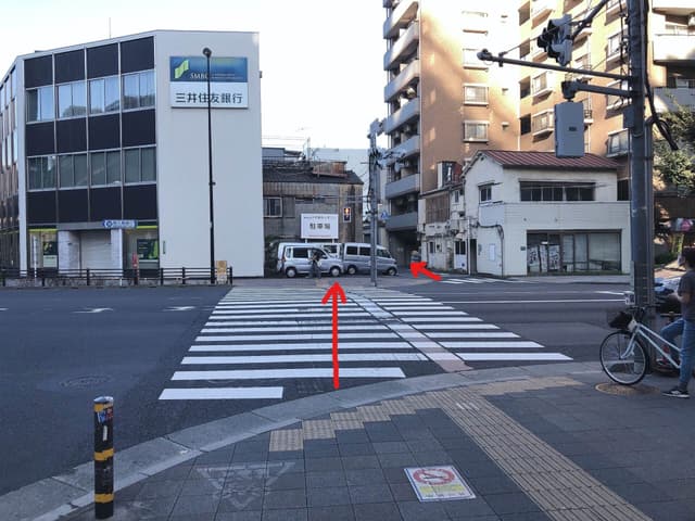 2正面に見える横断歩道を渡ります。