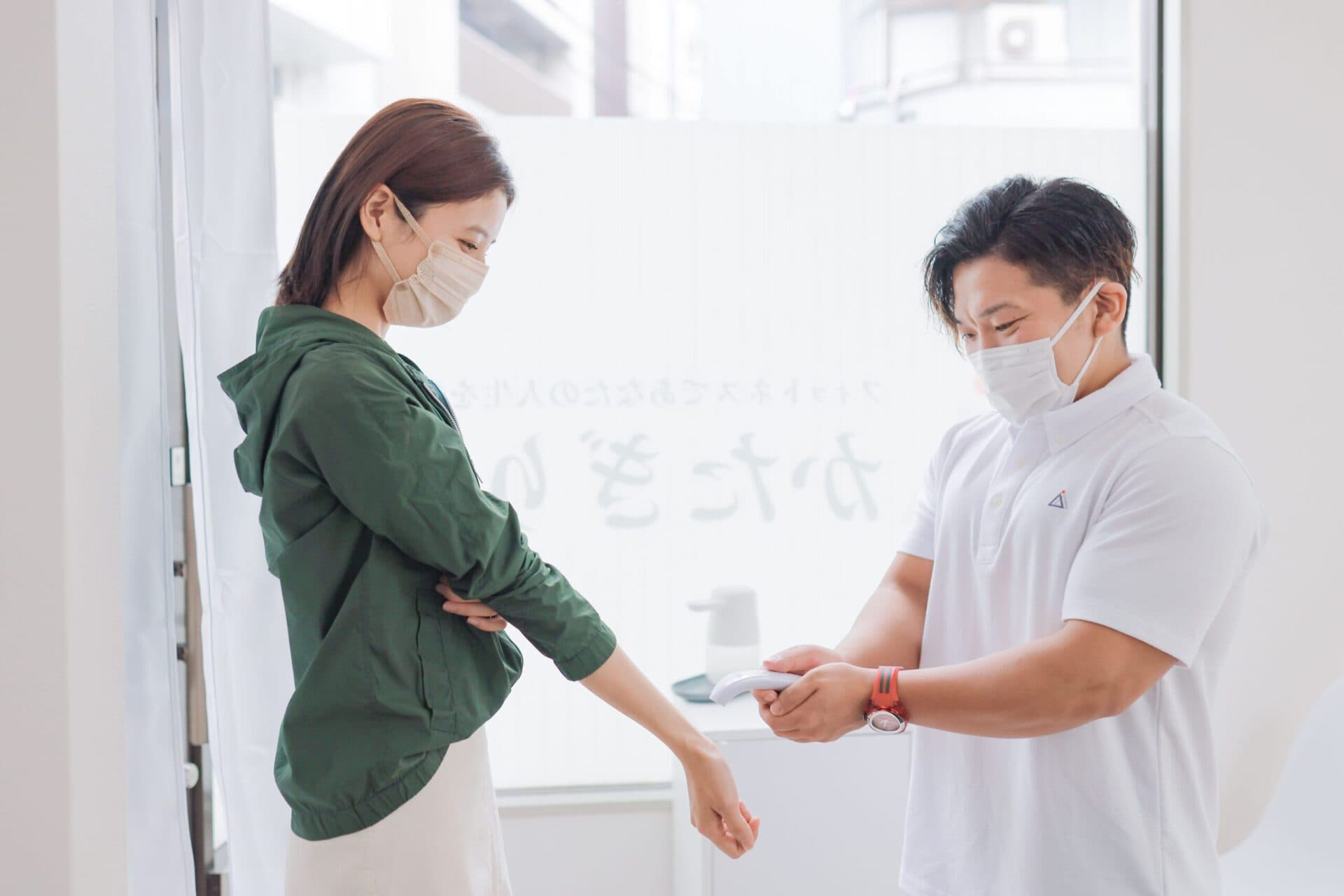 ・来店時の検温・消毒を徹底しています。