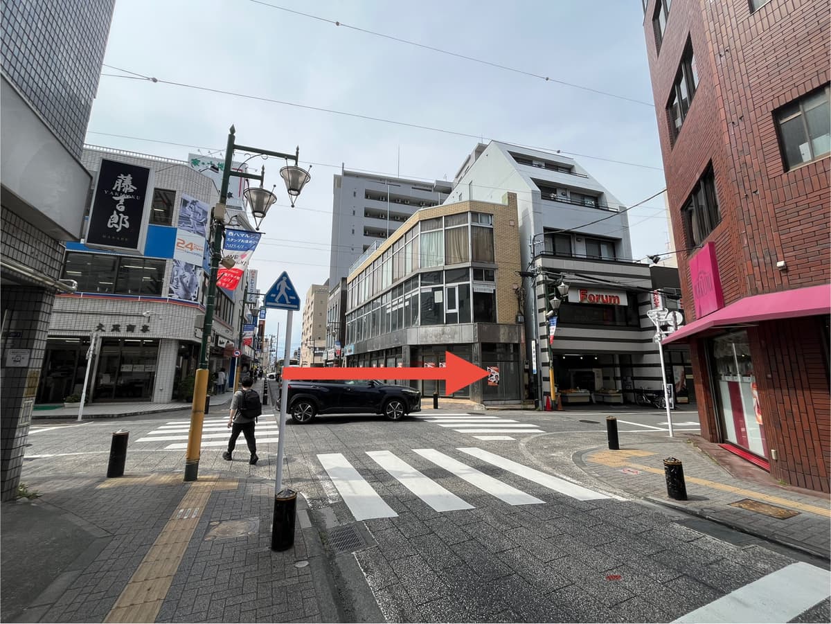 3次の十字路を右折します。
